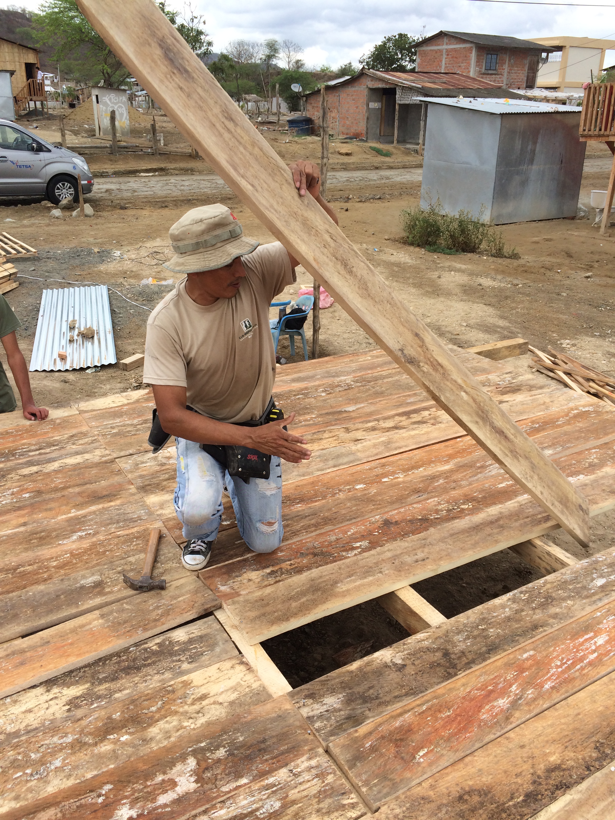 2017-01-12 10.50.05 Previous Next Published April 17, 2017 at 2448 × 3264 in Rebuilding after the Earthquake Maestro Ivan nailing down the floor.