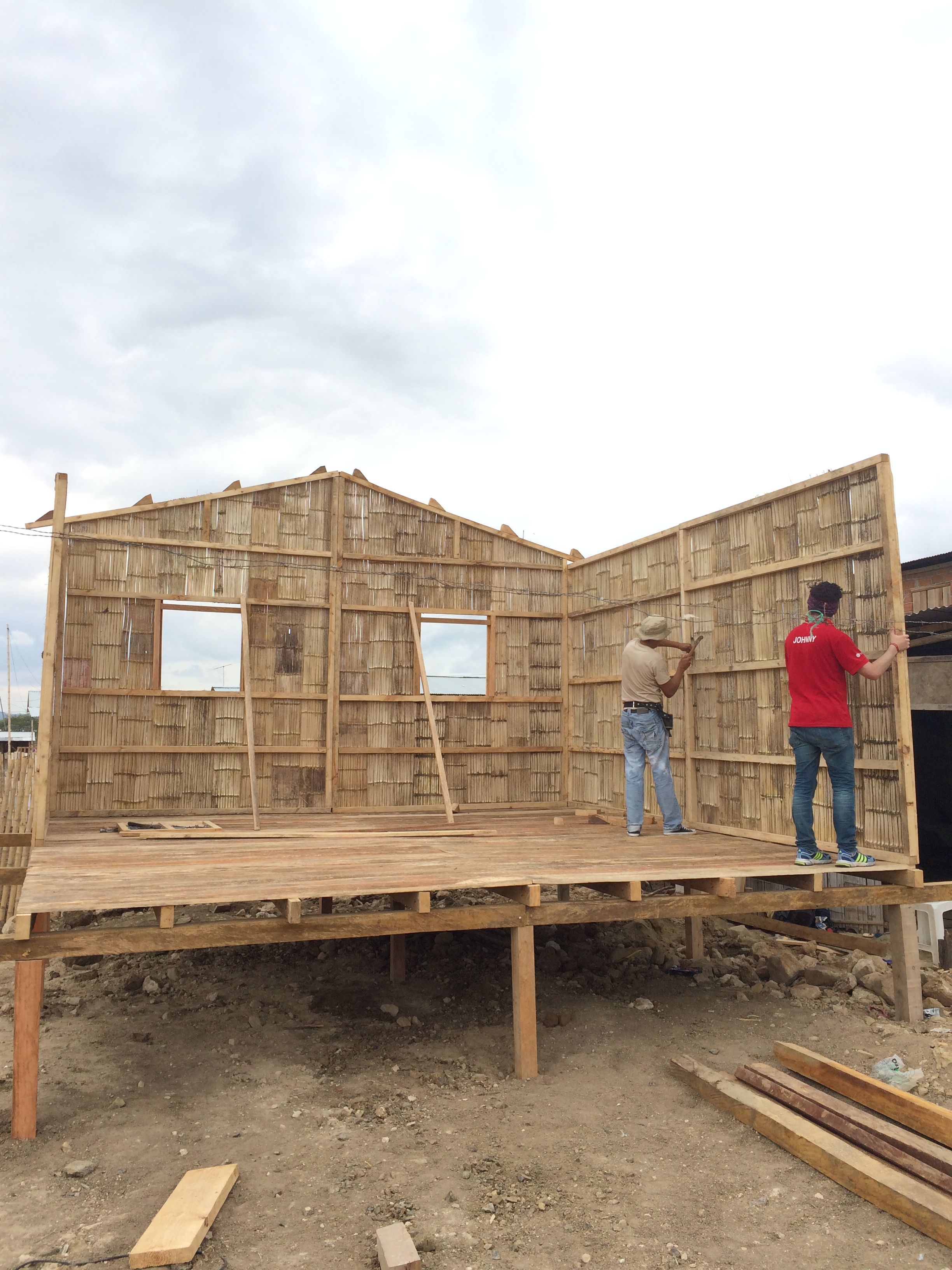 2017-01-12 11.25.31 Previous Next Published April 17, 2017 at 2448 × 3264 in Rebuilding after the Earthquake Maestro Ivan and Johnny lifting a wall into place.