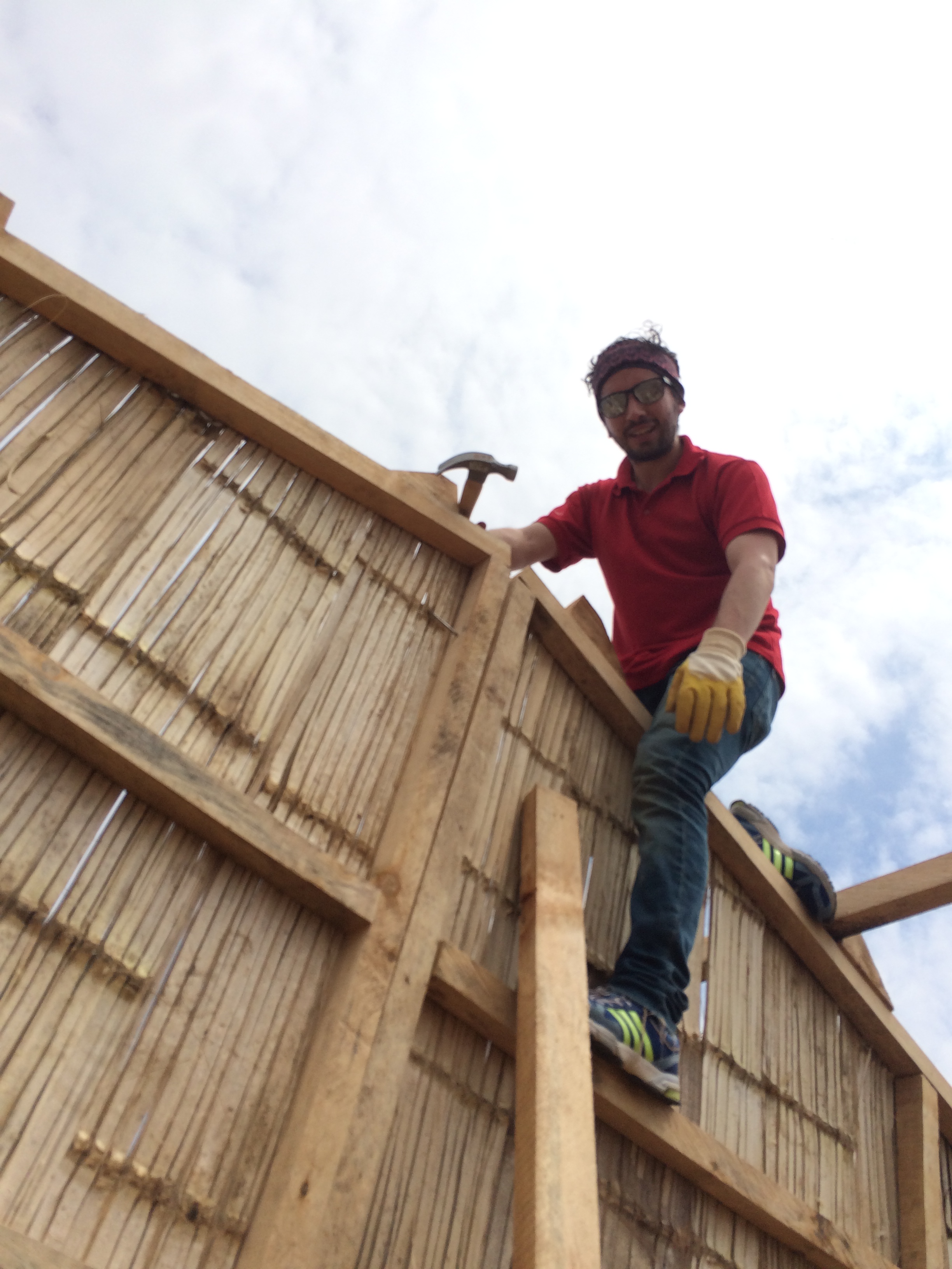 2017-01-12 12.34.17-1 Previous Next Published April 17, 2017 at 2448 × 3264 in Rebuilding after the Earthquake Johnny placing beams for the roof.